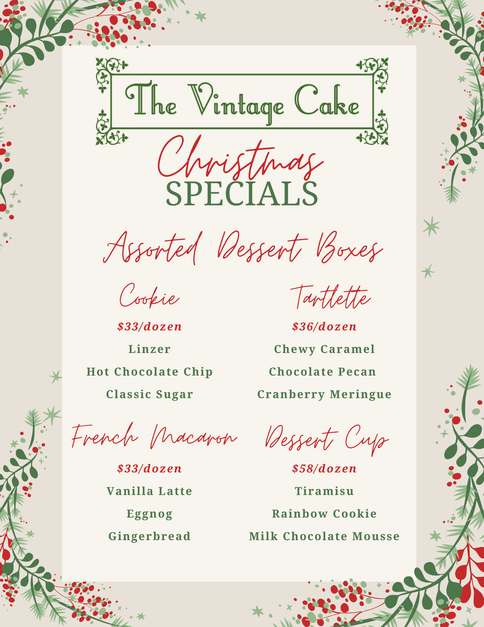 Santa requested some special desserts for Christmas! The menu below is available for pre-order only.